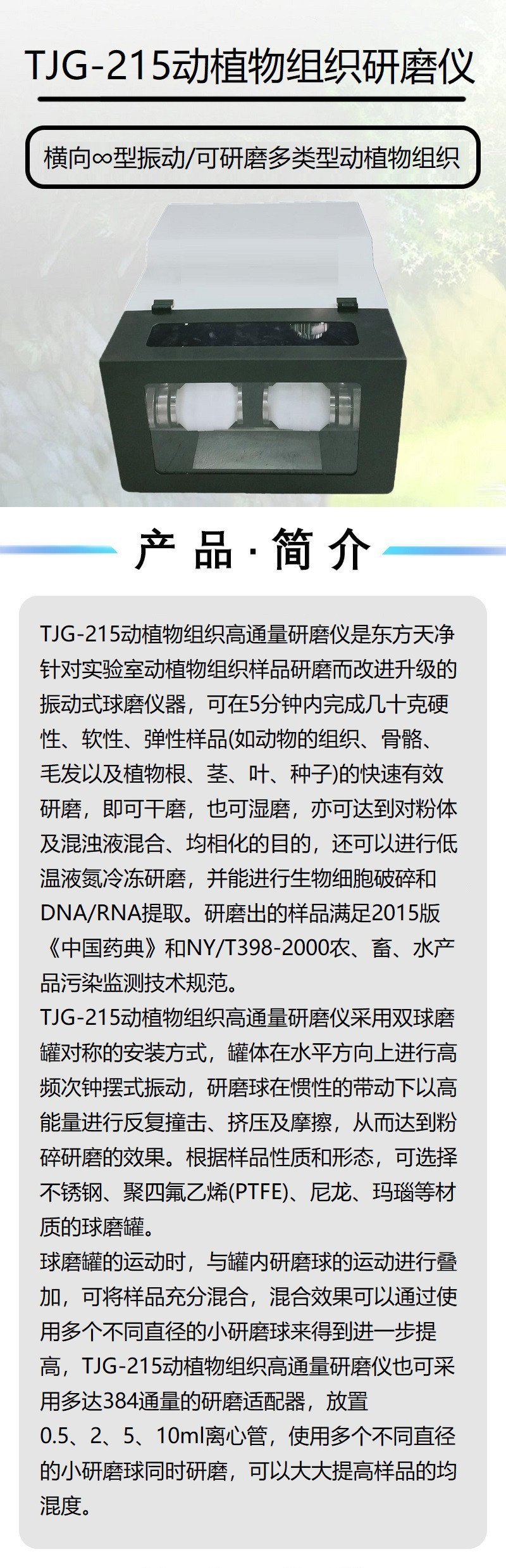 有TJG-215动植物组织研磨仪的详细技术参数吗?