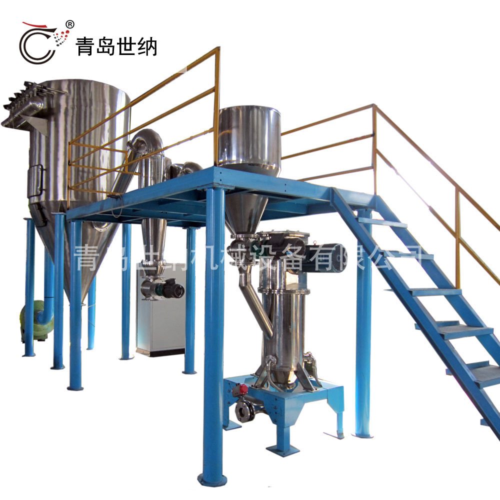 气流来实现干式物料超细粉碎的设备,它由气流粉碎机、旋风收集器、可一次得到想要的产品粒径,也可与多级分级机串联使用,一次生产多个粒径段的产品。
