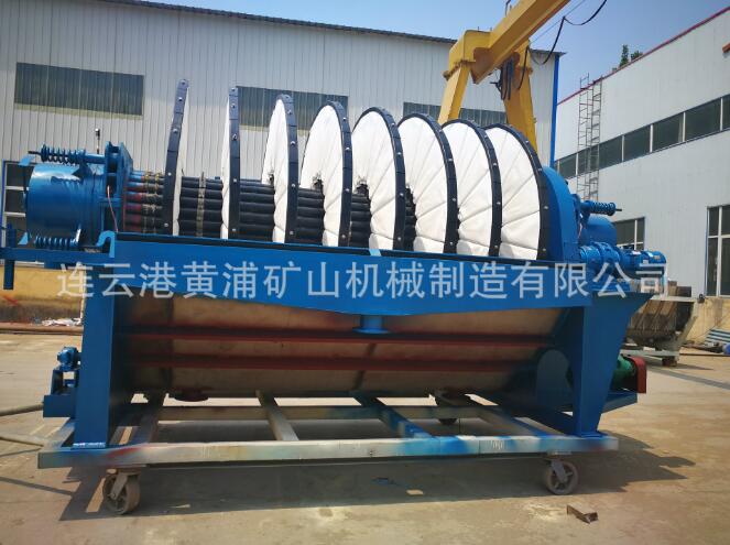 HP型盘式真空过滤机是利用真空作为过滤动力,使浆体进行固液分离的设备,其主要由分配头、轴承、导料及卸料装置、滤盘、主轴、搅拌装置,槽体,给矿装置、搅拌传动、主轴传动,集中润滑系统等主要部件组成,吸收国内外机型的优点,针对金属矿物密度大,沉降速度快,粘度大进行了优化设计,具有结构坚固耐用、滤盘运转平稳、自动变速搅拌密封可靠、防止漏浆等优点,滤扇由高强度工程塑料制成,孔率大,高强度锦纶单厚丝滤布,表面光滑,卸饼率高且不易堵塞,使用寿命长,所有这些特点保证了金属、非金属矿物在脱水中获得优良脱水指标。