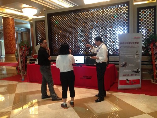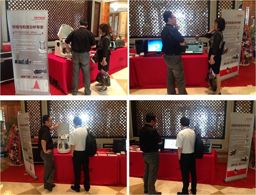 北京飞驰(FRITSCH)作为唯一的现场赞助商,给大会带来了鲜活的色彩。与会期间,许多老师被 FRITSCH 的振动筛分机 Analysette 3 PRO 稳定的振幅控制与筛分能力、高能行星式球磨机 Pulverisette 6 超细的粉体研磨与安全性以及动态颗粒图像分析仪 Analysette 28 ImageSizer 粒径与粒形分析的强大功能所吸引,赞不绝口。
