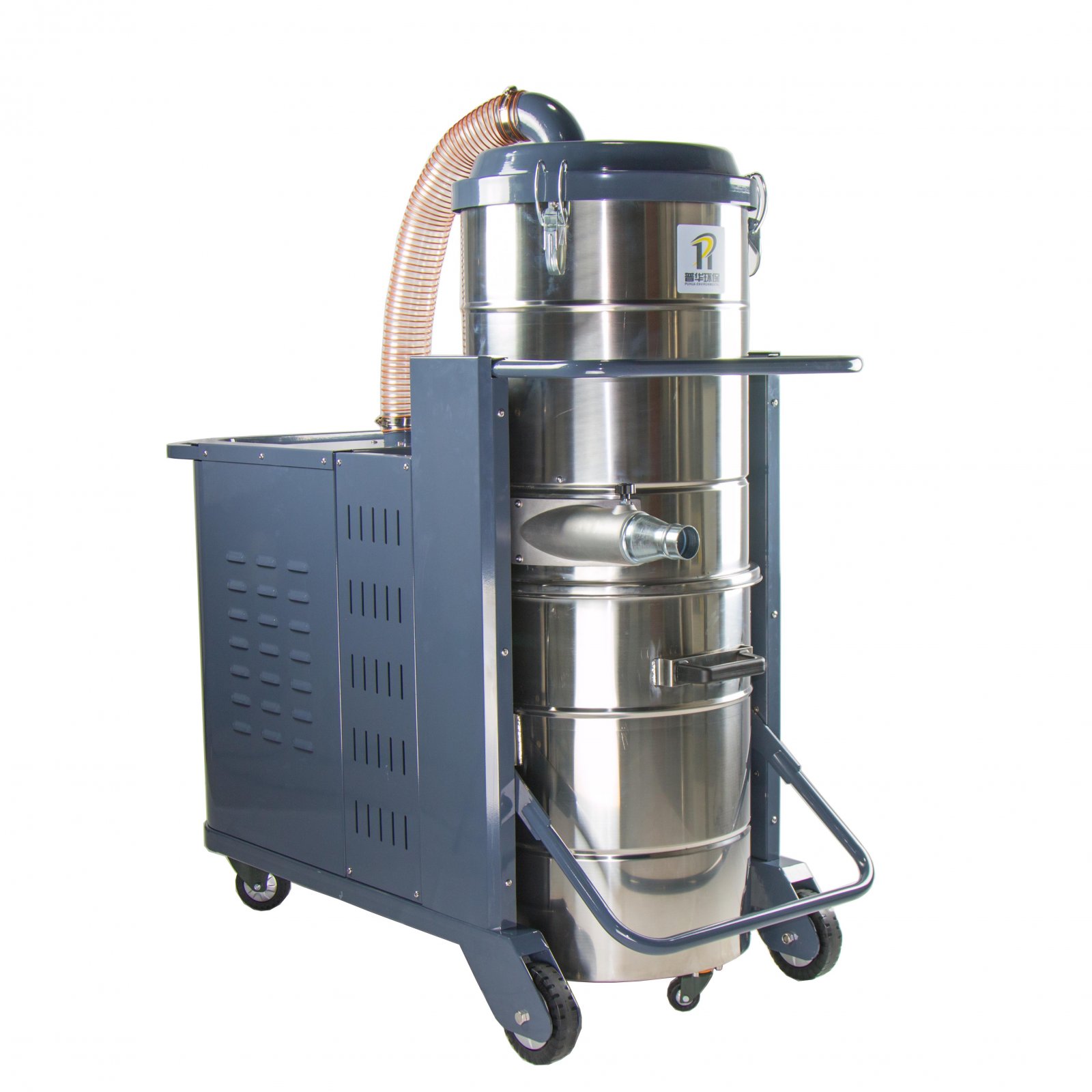 整机结构方面,集尘系统和动力系统并列放置,是工业吸尘器*经典机型,此结构运行平稳,移动平稳。