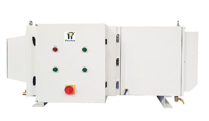 静电主过滤单元一般分为电离段和收集端,电离段采用国内***的超高压电源(6kv~12kv)产生高压静电,在高压等离子电场的作用下,将微小的油颗粒与气体进行电离荷电,带电的微小离子(油颗粒)随风进入后面的收集段,由于收集段极板之间有电势差,通过正负相吸平流吸附技术,将带点离子吸附于极板之上,逐渐形成油滴沉降在集油槽内,从而实现将油烟油雾废气中的在油雾颗粒,有机物质等降解,净化,达标排放。