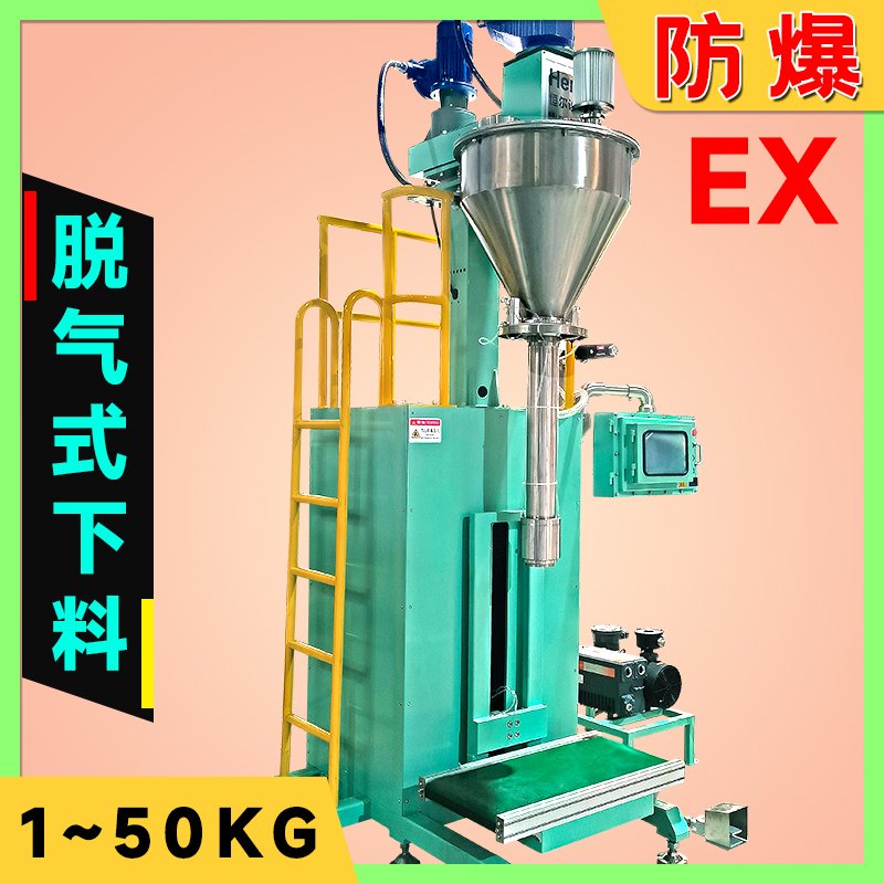 超细粉脱气式螺旋包装机,用于 10~50kg/袋的物料包装,能自动完成物料脱气装袋、过程除尘等工作,广泛适用于矿产、磷酸铁钮、三元材料、石墨粉等正极、负极新能源材料、工建材、粮食、饲料等行业,尤其适用于要求物料含气量大或流动性差的小袋包装。
