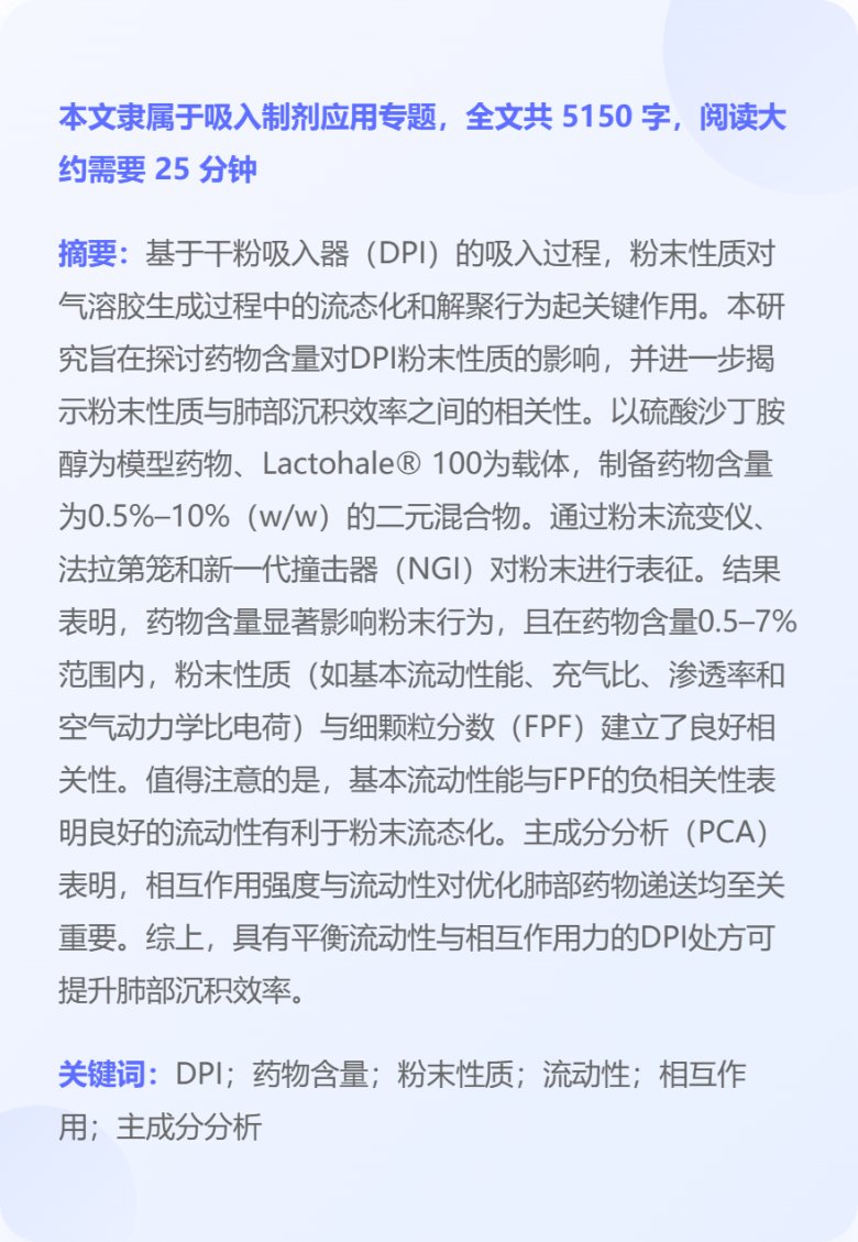吸入药物应用专题|探究药物含量对干粉吸入剂( DPI )粉末性质的影响及肺部药物沉积的潜在预测