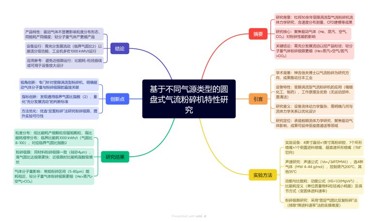 基于不同气源类型的圆盘式气流粉碎机特性研究一、介绍本文隶属于气流粉碎机应用专题,全文共 12000字,阅读大约需要 20 分钟。摘要本研究通过实验探讨了氦气、蒸汽、空气及二氧化碳四种不同分子量气源对圆盘式气流粉碎机细磨工艺的影响。研究结果表明,气源类型对产物粒度分布形态无显著影响,但分子量较小的轻质
