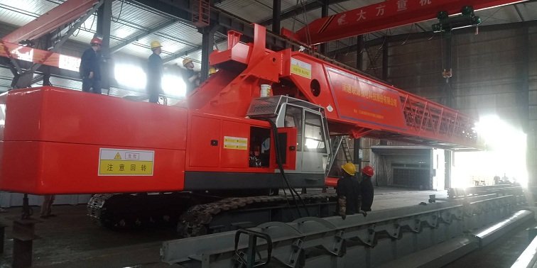 现有的履带式混凝土布料机在运输潮湿的混凝土产品时,混凝土容易在皮带上大量粘结。粘接后的皮带会使得输送困难,影响使用。粘结后如采用人工清理,清理困难。因此我公司设计了混凝土布料机头部清扫装置,解决了皮带粘料的问题。