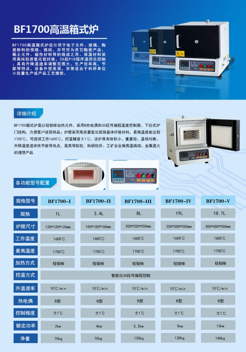 有BF1700高温箱式炉的详细技术参数吗?