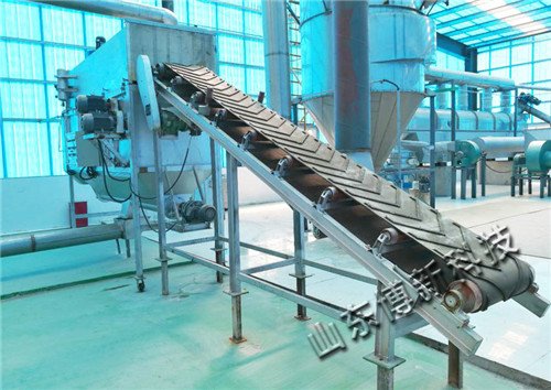 1、由工人或机械手,将袋装粉粒体物料放到皮带输送机上,由皮带输送机传送至45度角的滑板上并依靠重力沿滑板下滑。
