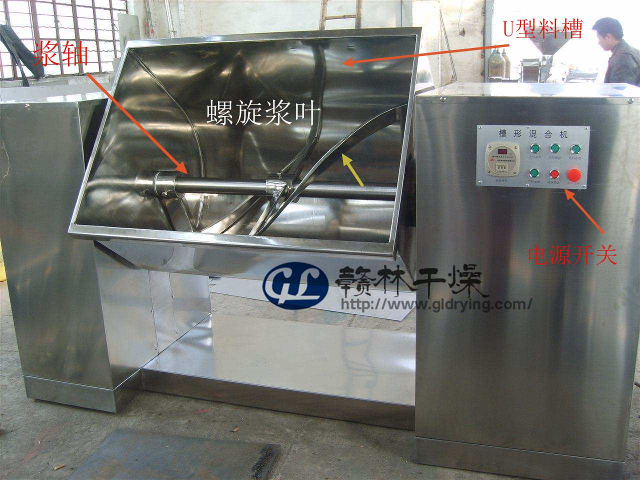 本机具有结构紧凑、操作简单、外形美观、占地面积小、清理方便、混合效果好等特点。 使用说明1.使用前应进行一次空运转试车,在试车前应检查机器全部联接件的紧固程度,减速机的润滑油量和电机设备的完整性,然后闭合电源总开关进行空运转试车。分别点动倒料、复位按钮,检查工作情况是否良好,符合上述要求后进行加工(倒料按钮与复位按钮不能同时进行使用)。 2.加料后必须将料槽盖板盖好,以免物料浅出料槽,盖为有机玻璃能观察物料的搅拌情况,如搅拌达到效果后,点动倒料按钮进行倒料,当料斗接近机座时即停止,以防止坏机件,倒料完毕后,按下复位按钮,使料槽复合到原来位置。 |