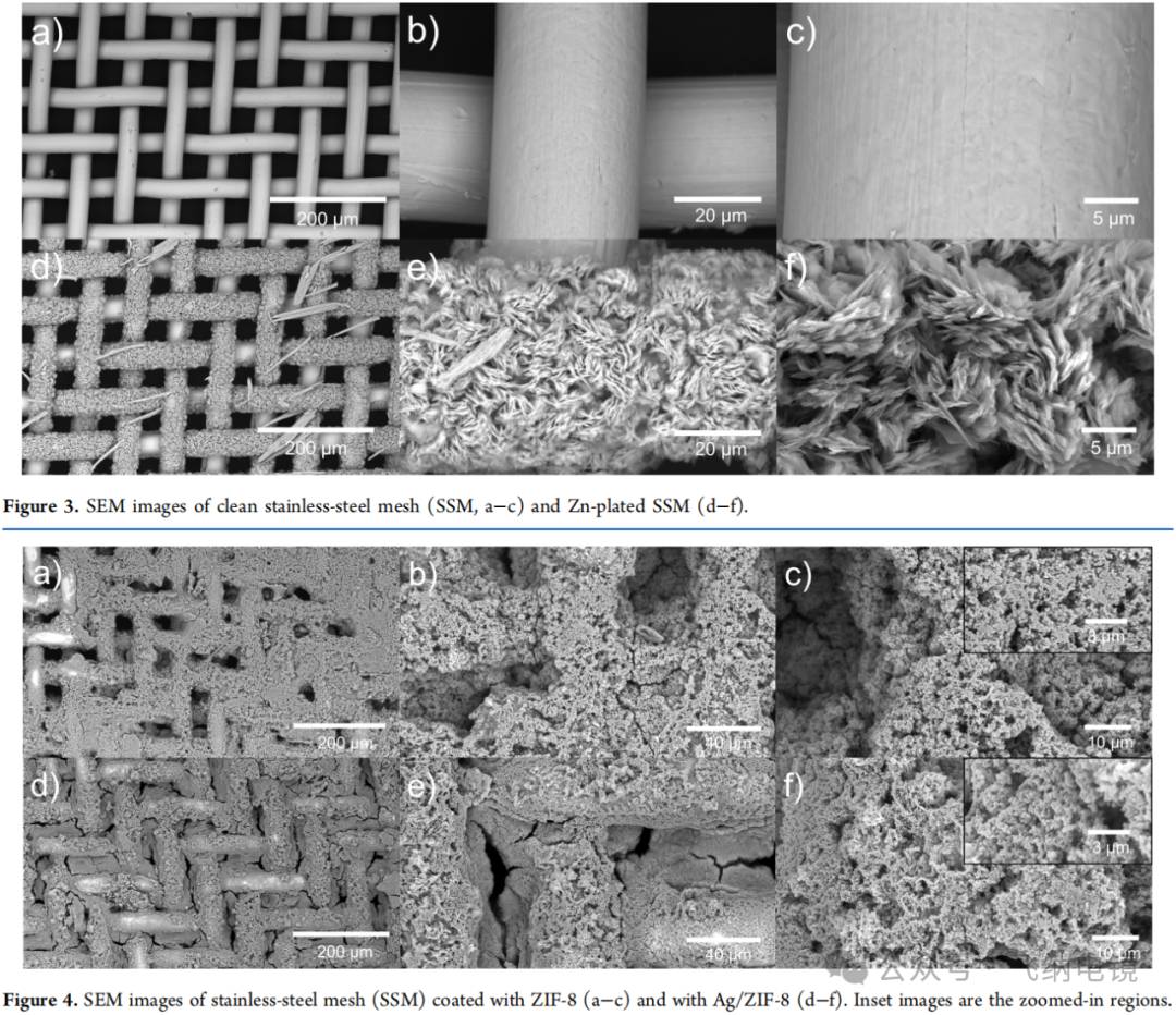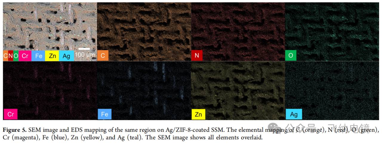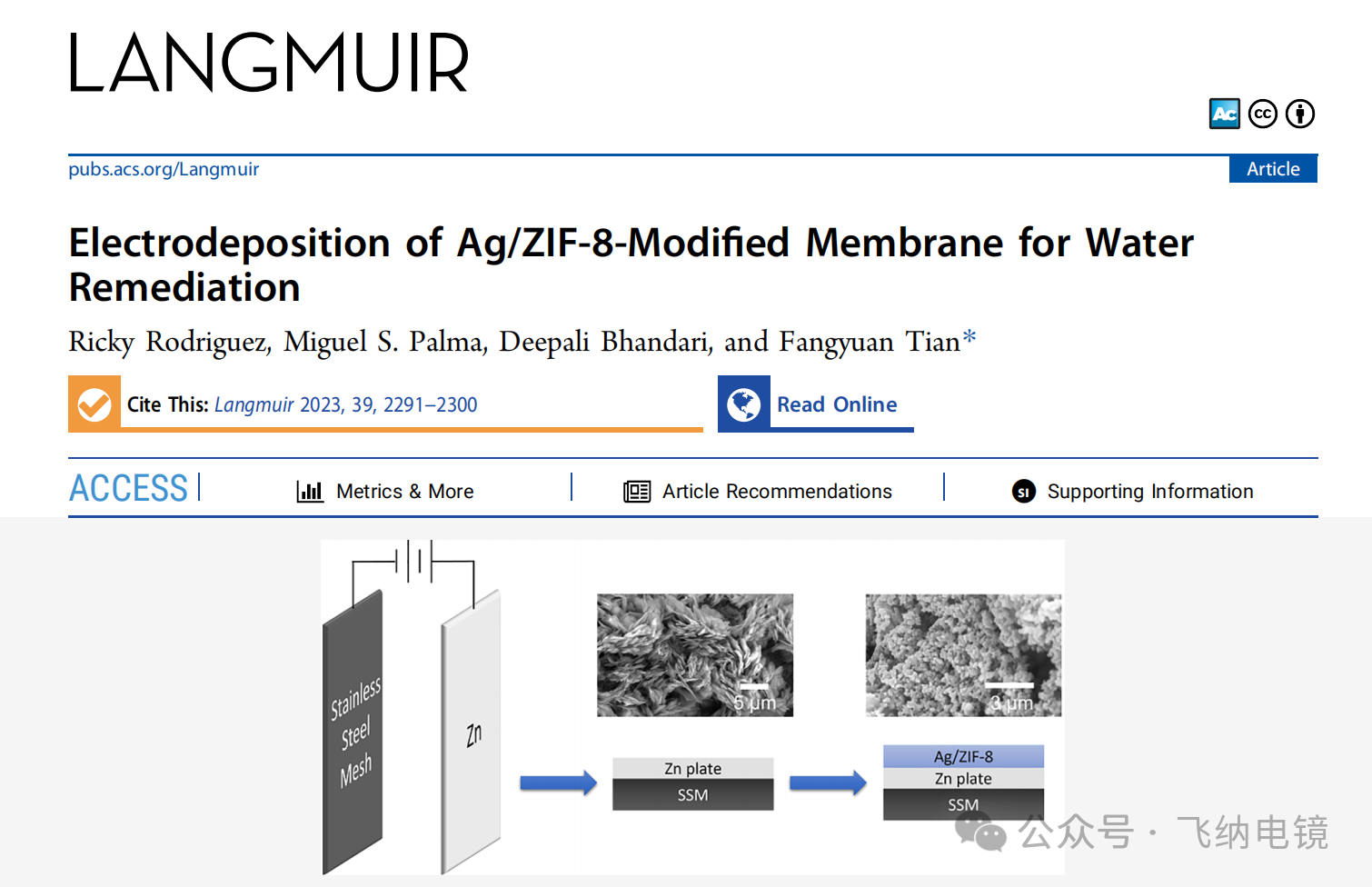 这篇文章的核心内容是通过电沉积方法在不锈钢网上制备了基于 ZIF-8 和 Ag/ZIF-8 的改性膜,并研究了其在水处理中的应用。ZIF-8 是一种具有高比表面积和可调节孔径的 MOFs 材料,广泛应用于气体和液体分离。通过在 ZIF-8 中掺杂银纳米颗粒(Ag NPs),研究人员制备了具有抗菌性能的 Ag/ZIF-8 膜,用于去除水中的有机染料(如罗丹明B)和抑制细菌生长。通过飞纳扫描电子显微镜(Phenom ProX G6)的表征,研究人员详细观察了 ZIF-8 和 Ag/ZIF-8 改性膜的形貌和结构。这些观察结果为理解 ZIF-8 和 Ag/ZIF-8 在水处理中的应用提供了重要支持。这种基于 MOFs 的改性膜不仅能够有效去除水中的有机染料,还具有显著的抗菌性能,为水处理领域提供了新的解决方案。