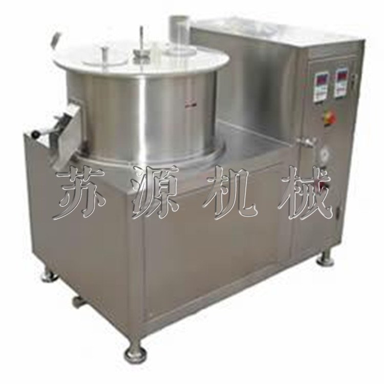 本机是通过设置旋转离心盘、鼓风机、气动喷枪,将湿颗粒制成美丽的球丸。将前道工序做成的湿颗粒投入旋转离心盘内,启动鼓风机后再将旋转离心盘启动,使湿颗粒受到环隙空气浮力、旋转离心力、自身重力作用,呈环周绳股状运动,从而形成真球度极高的球丸。