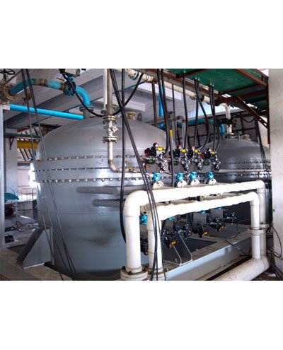 该系统由罐体装置、滤柱、滤布、喷淋装置、储槽、泵、仪表阀门及控制系统等组成。