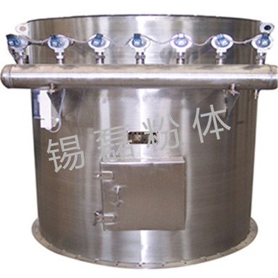 本设备通常有上筒体(净气室)、中筒体(混合室)和下锥体三大部件组成。含尘空气由进风口进入筒体,因气流体积突然扩张流速骤然降低,较大颗粒在自身重量的作用下从含尘气流中沉降到下锥体,较小颗粒由于滤袋的筛滤、碰撞、扩散、静电等诸多效应的作用下,被滞阻在滤袋外壁,净化后的气体,通过滤袋文氏管从上筒体出料口排出。当滞阻在滤袋外壁的尘粒不断增加时,使除尘器的阻力不断增大,为降低阻力,由脉冲控制仪发出信号循序打开电磁脉冲阀,使气包内的压缩空气由喷吹管上的各喷吹孔喷射到对应的文氏管(一次风),并在高速气流通过文氏管时,诱导数倍于一次风的周围空气(二次风)进入滤袋,造成滤袋瞬间急剧膨胀,由于反向脉冲气流的冲击作用很快地消失,滤袋又急剧收缩,这样膨胀、收缩使积附在滤袋外壁上的多余的尘粒被清洗,落下的颗粒从下锥体排出。由于清灰是依次分别向几组滤袋进行,并不切断需要处理的含尘空气,故在除尘过程中,除尘器的处理能力保持不变,其脉冲间隔、宽度、周期按颗粒的性质、含尘浓度及过滤风速的具体情况进行调整,使设备始终处于正常的工作状态。