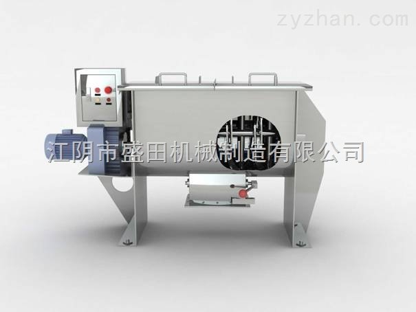 该机由混合槽、螺旋搅拌叶片和传动部件等组合而成,螺旋叶片一般做成二层,外层螺旋将物料从两侧向中央汇集,内层螺旋将物料从中央向两侧分流,使物料在混合槽内形成对流混合,从而达到高均匀度混合。