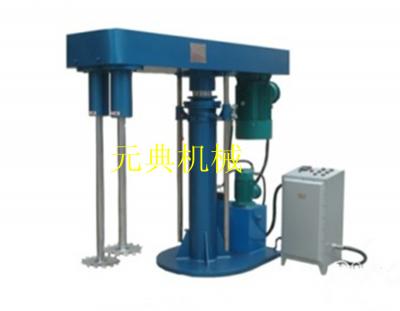 双轴搅拌分散机,适用于各化工行业(如油墨、油漆、涂料、颜料等)的物料分散、混合、调和等生产工艺。能独立分散易分散及对细度要求不高的各种物料,同时进行搅拌混合直接制成产品。本机的分散叶轮为锯齿形,分散叶轮在浆料中作高速旋转运动时,促使缸内浆料剧烈翻动,物料粒子受到强烈的冲击和剪切作用从而迅速地分散成微粒,搅拌浆叶根据物料缸大小而制造,使物料缸四周底部的物料能够得到充分的分散,达到生产工艺要求。