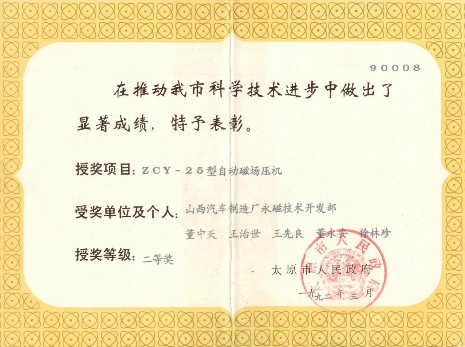 1992年太原市科技进步奖