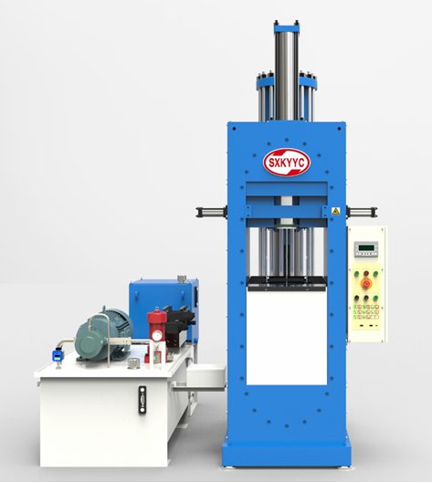 金开源的初代机型使用了导柱和单滑块结构,利用油缸把滑块拉开,导柱升起即可放料,滑块合上即可加压。高压腔位置是固定的,无需像传统压机的高压腔来回走动,因此占地面积小,操作效率更高。