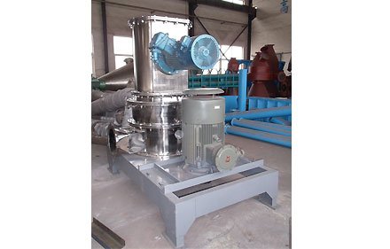 物料由加料系统均匀的送入粉碎室受到高速旋转的粉碎盘的强烈冲击,同时受到离心力的作用,与粉碎齿圈发生碰撞,受到剪切、摩擦、碰撞等多种综合力的作用,使物料粉碎,被粉碎的物料随气流运动到分级区,通过变频调节的分级轮,对粗细物料进行分离,符合细度要求的产品随气流进入旋风收集器和除尘器收集,粗物料返回分级区二次粉碎。粉碎分级一体化设计,通过调整分级轮获得理想的产品粒度。