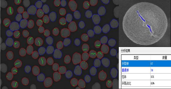 通过汇鸿LIBMAS,可快速统计并计算开裂球占比,获得开裂球裂缝信息,从而改善工艺条件,如图二。