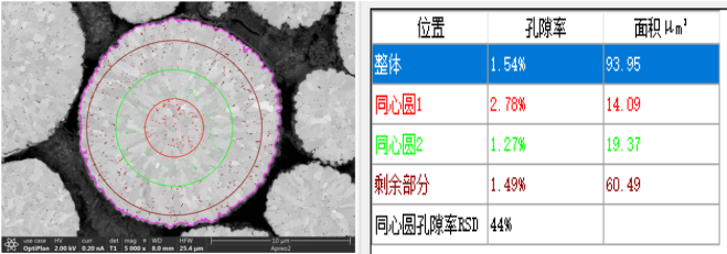 图三:二次球截面孔隙识别