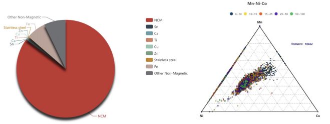 图四:颗粒类型占比饼状图(左),三元统计相图(右)