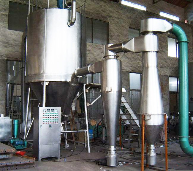 中药浸膏专用喷雾干燥机是吸收国外技术开发的适用于熔点低、含糖高的中药产品的干燥机械,并具有不粘壁、物料不焦化、不易吸潮等特点。该装置根据干燥产品的特点和性质确定喷雾干燥的工艺条件,自动化程度高,操作方便,符合GMP要求,该装置的成功开发,解决了多年来许多熔点低、含糖高的中药产品不能用喷雾干燥的技术难点,也是对喷雾干燥在中药制药中的应用技术研究的新发展。