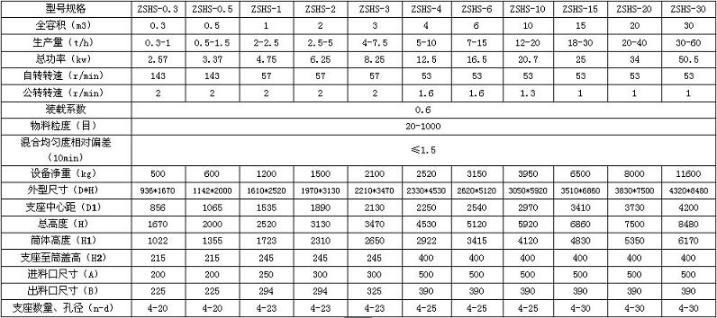 有ZSH双螺旋锥形混合机的详细技术参数吗?