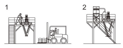配置2:架设多层平台,人工拆袋投料,真空上料,成品储存,自动包装;