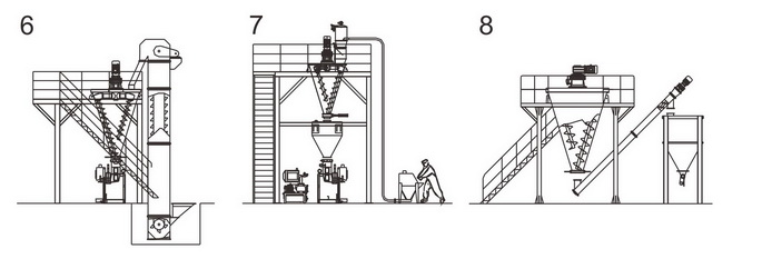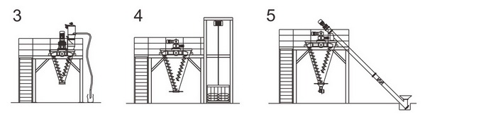 配置3:锥形混合机架设平台,人工投料,二次提升物料入成品仓,再以包装;