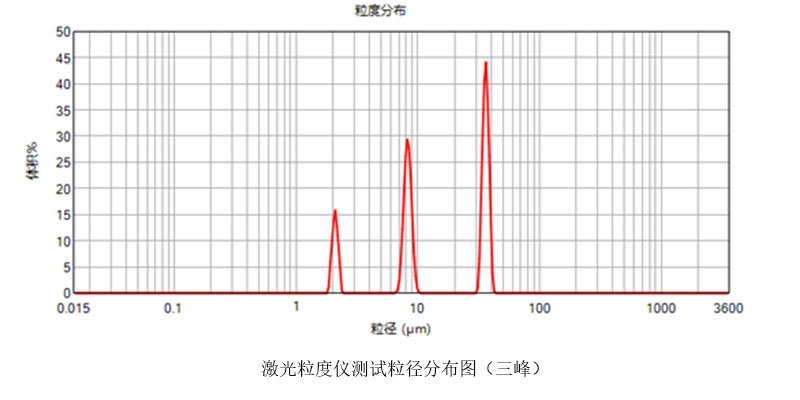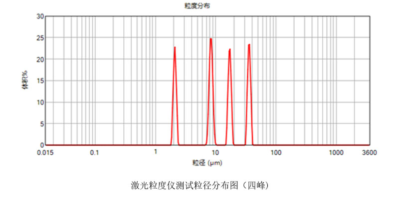 三峰和四峰宽分布标准物质由交联聚苯乙烯乳胶微粒组成,粒径分布范围1-50μm。
