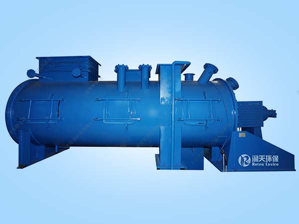 RM系列混合器,由卧式筒体及沿筒体轴向设置的主轴组成。主轴为液压驱动,经专业重力模型模拟设计的轴流式+径流式搅拌的桨臂及桨叶,可使内部的物料返混、交叉流动,充分混合。预破碎的物料经混合器前端顶部进入混合器,经混合器预留的法兰接口加入废液、污泥等充分混合后就达到了均质化的效果。到达设备另一端的物料已经经过充分返混及交叉流动,克服了不同时间段加入的物料造成的不均匀性,达到了充分的均质化(混合器作为一台均质化设备的同时也是一台下游设备的缓冲器)。
