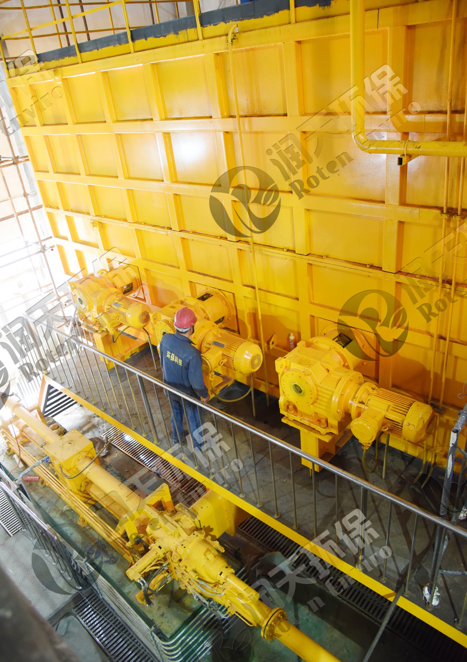 *液压滑架将污泥推送到落料口,起到破拱给料的作用。
