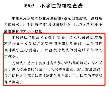 2020版中国药典光阻法不溶性微粒检测规定