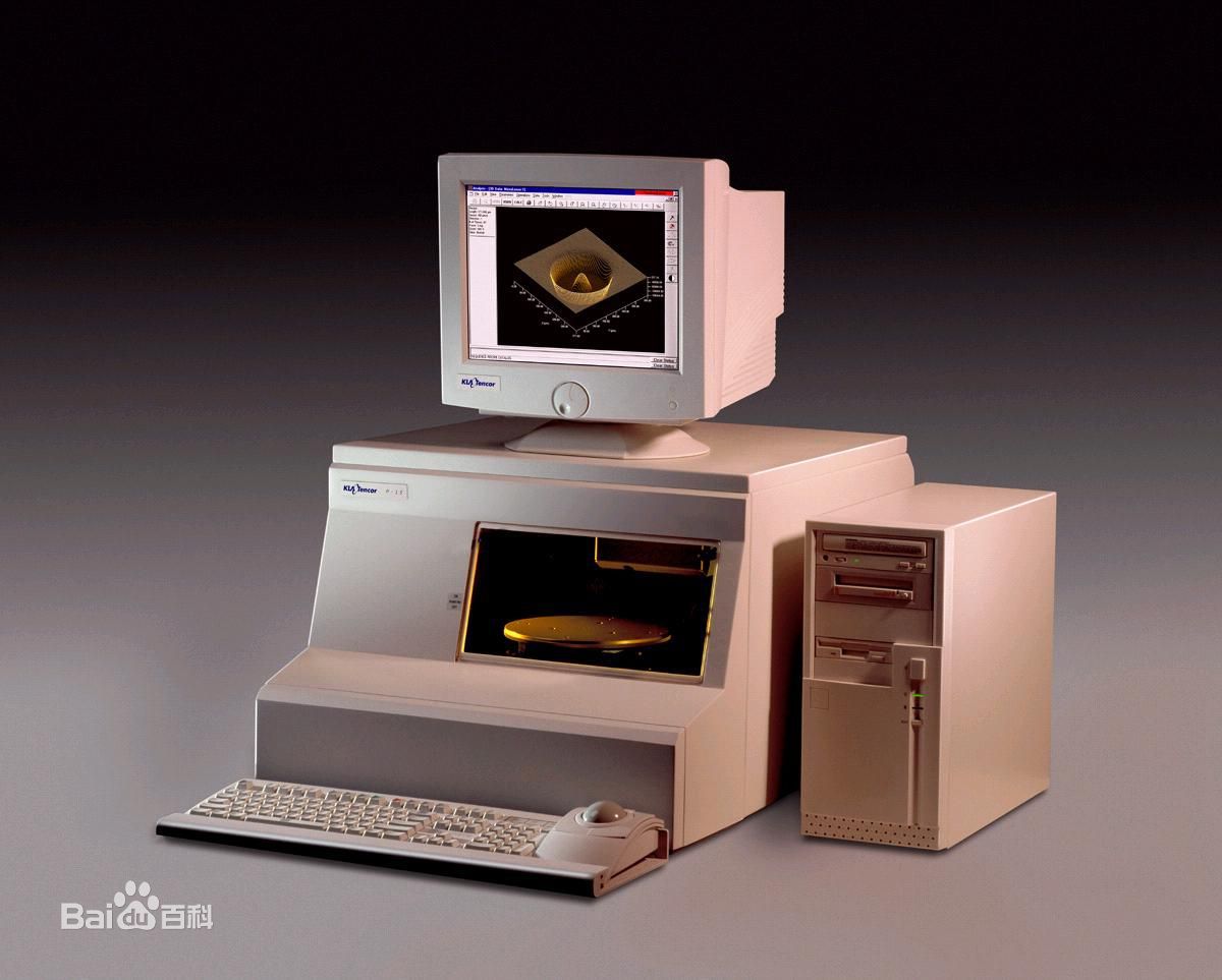 台阶仪属于接触式表面形貌测量仪器[1] 。根据使用传感器的不同,接触式台阶测量可以分为电感式、压电式和光电式3种。其测量原理是:当触针沿被测表面轻轻滑过时,由于表面有微小的峰谷使触针在滑行的同时,还沿峰谷作上下运动。触针的运动情况就反映了表面轮廓的情况。传感器输出的电信号经测量电桥后,输出与触针偏离平衡位置的位移成正比的调幅信号。经放大与相敏整流后,可将位移信号从调幅信号中解调出来,得到放大了的与触针位移成正比的缓慢变化信号。再经噪音滤波器、波度滤波器进一步滤去调制频率与外界干扰信号以及波度等因素对粗糙度测量的影响。