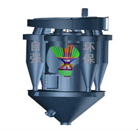 2、分级原理先进。结合多种选粉机理,利用方向相反的离心力和气流向心吸力的相平衡,物料都经过分级界面分明的选粉区,故分级精度高。