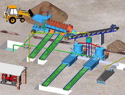 砂金矿相较于其它的矿石选矿,选别前的准备工作,主要是去除砂金原矿中的泥浆,或者使粒级达到选别作业的要求。砂金在矿石中的含量低,为了提取砂金中的黄金,需要将矿石破碎和磨细并采用选矿方法预先富集或从矿石中使金分离出来。一般的砂金矿选厂多采用颚式破碎机进行粗碎,采用圆锥破碎机中碎等。