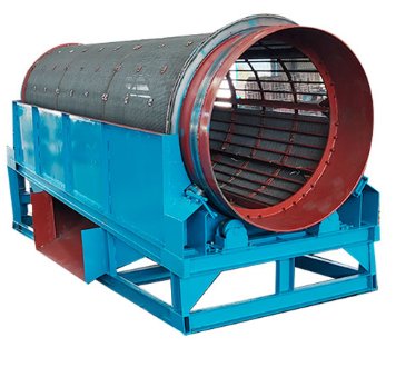 滚筒筛主要有电机、减速机、滚筒装置、机架、密封盖、进出料口组成。滚筒装置倾斜安装于机架上。 电动机经减速机与滚筒装置通过联轴器连接在一起,驱动滚筒装置绕其轴线转动。当物料进入滚筒装置后,由于滚筒装置的倾斜与转动,使筛面上的物料翻转与滚动,使合格物料(筛下产品)经滚筒后端底部的出料口排出,不合格的物料(筛上产品)经滚筒尾部的排料口排出。由于物料在滚筒内的翻转、滚动,使卡在筛孔中的物料可被弹出,防止筛孔堵塞。滚筒筛砂机、滚筒筛分机与滚筒筛的原理构造几乎相同,是人们对它的认识和叫法上存在差异。