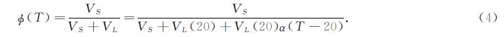 式中:Φ(T)为温度在T 时校正的固含量;VS为固体颗粒体积;VL为基体体积;α 为基体的体积热膨胀系