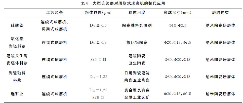 基于节能和节省人工方面而进行的大型连续磨对周期式球磨机的替代应用,大型连续磨对周期式球磨机的替代应用见表8。