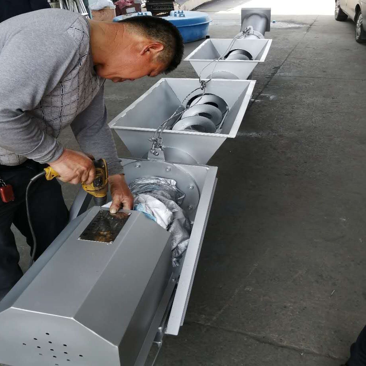 螺旋压榨机由挤压螺旋、螺旋管、传动部件、进料斗及卸料斗等组成。污物由进料斗进入螺旋管,在挤压螺旋的作用下,压缩、脱水后输送至出渣口。