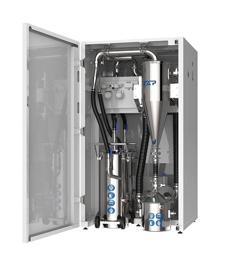 本产品采用进口变频风机作为动力,具有压力、气流恒定,可连续作业,动力强劲效率高,噪音小,密封性好等特点。产品设有物位传感器,料满自动报警,可在线不停机更换粉罐与集尘桶。设有压差传感器对过滤器内外进行实时监测,并自动反吹,防止滤芯堵塞,延.长过滤器使用寿命。