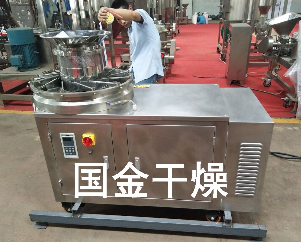 旋转式制粒机主要用于制药、食品、冲剂、化工、固体饮料等行业,将搅拌好的物料制成所需颗粒,特别适用对粘性较高的物料。本机凡与物料接触部份均采用不锈钢制造,外型美观,结构合理,制粒成型率高,颗粒美观,自动出料,避免人工出料造成的颗粒破损,并适合流水作业。