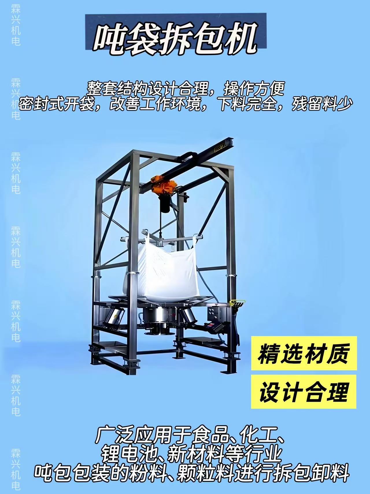 吨包投料站是适用于大袋包装物料如塑料树脂和食品添加剂等干燥粉、粒状物料的自动投料设备,它是集气动拍击助流、振动、助流、称重、除尘于一体的大袋投料机、它的自动化程度高、拆袋速度快,功耗低,环保效果好反应釜 / 混合工段,原采用人工拆包、人工投料、皮带 / 人工转运上料模式,存在粉尘泄漏、人员接触高危物料、效率波动、计量不准、安全隐患大等问题,不符合GMP / 安环 / 智能工厂要求。为实现无人化、密