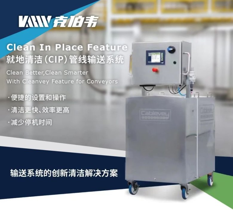我们致力于创新,不仅限于清洁领域,更能提供一系列定制化的清洁选项。我们的解决方案旨在满足并超越行业标准。Cablevey 宣布推出 Cleanvey—就地清洁 (CIP) 工艺自动化管线输送机。该解决方案将重新定义食品和药品行业的安全标准。Cleanvey 旨在实现 CIP 流程自动化,从而能够高效、彻底地清洁管线输送机。该移动装置采用集成水管连接和预编程清洁选项设计,简化了清洁过程,使技术人员只
