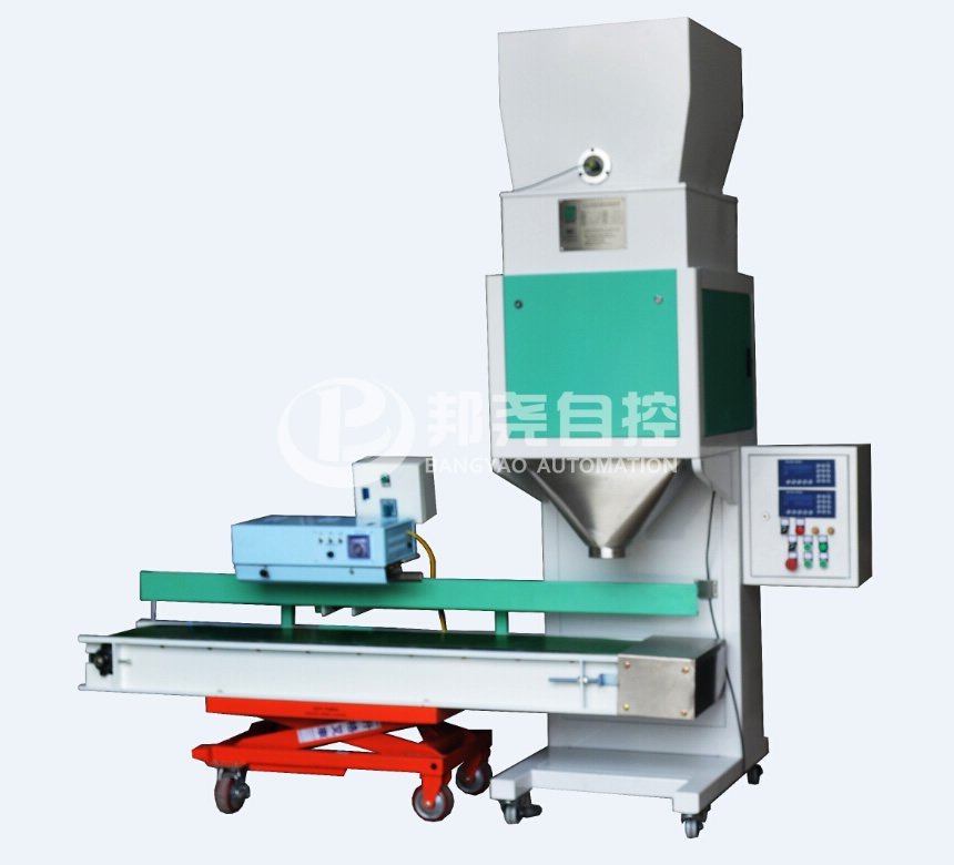 当定量包装秤进入自动运行状态后,称重控制系统打开给料门开始加料,自动定量包装秤给料装置为快、慢两级给料方式;当物料重量达到快给料设定值时,停止快给料,保持慢给料;当物料重量达到*终设定值时,关闭给料门,完成动态称重过程;此时系统检测夹袋装置是否处于预定状态,当自动定量包装秤包装袋已夹紧后,系统发出控制信号打开称量斗卸料门,物料进入包装袋中,物料放完后自动关闭称量斗的卸料门;卸空物料后松开夹袋装置,自动定量包装秤包装袋自动落下;包装袋落下后进行缝包并输送到下一工位。如此循环往复自动运行 。