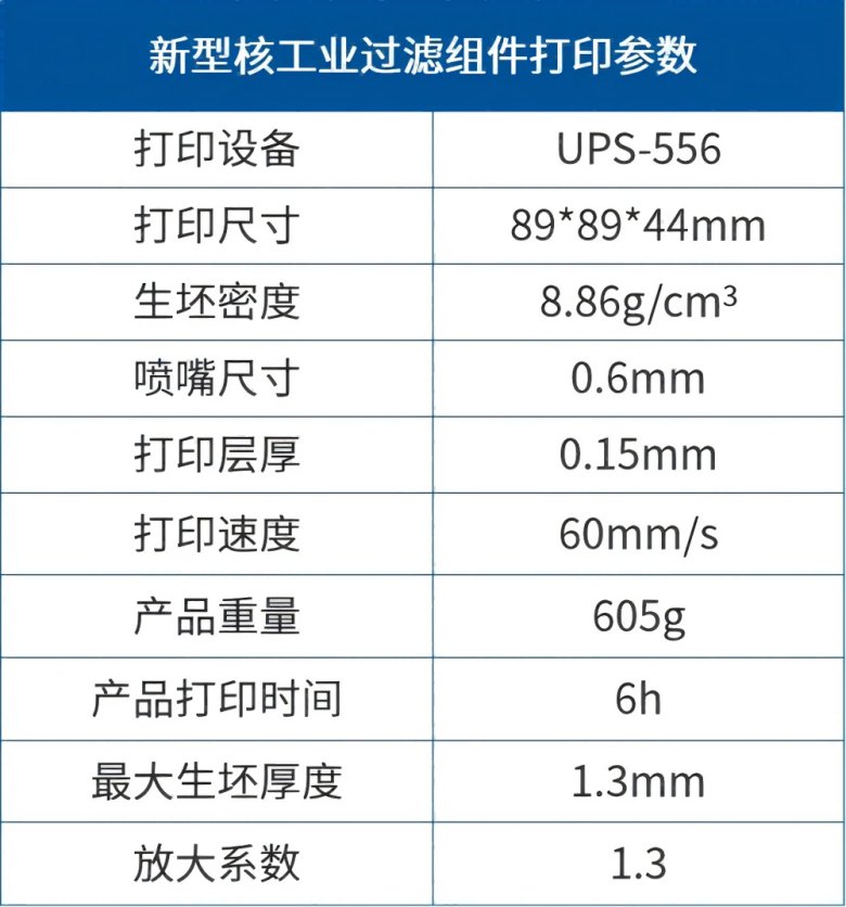 ▲新型核工业多孔过滤组件打印参数 @升华三维