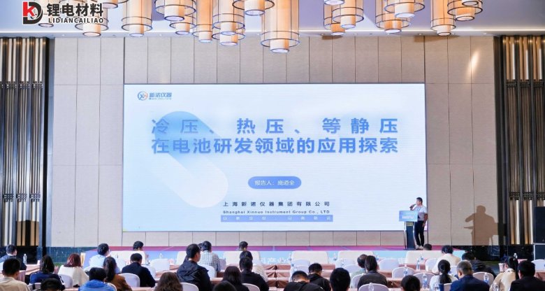 在本次大会主题报告中,上海新诺仪器集团有限公司总经理庞道全先生以“冷压、热压、等静压在电池研发领域的应用探索”为题作了专题报告。他凭借近二十年粉末压力成型的实操经验,深入剖析了冷压、热压及等静压成型设备的性能特点,分享了其独到的见解与研究成果。长期扎根实验室一线的交流与实践,为其在新设备研发定制以及新材料筛选与开发方面提供了重要思路,也为电池材料研发领域的创新应用贡献了宝贵经验。