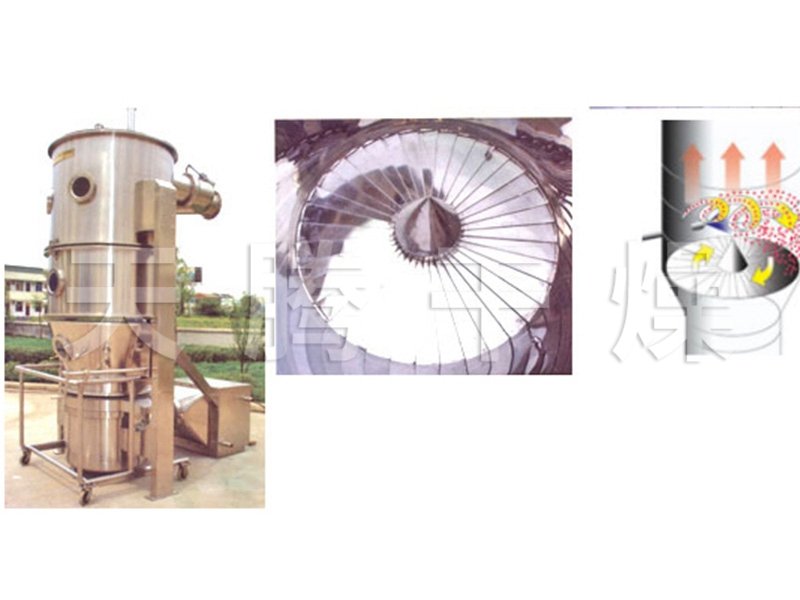 旋流流化床制粒包衣机是将流化床做成叶片式结构的流化床,并使叶片呈一定斜度,让气流从叶片的间隙通过,形成环流状的强大气流,使物料呈旋涡状似的有序运动,同时安装在侧壁的气动喷嘴将粘合剂或包衣液喷入呈旋涡状的物料层,从而将粉体制成颗粒或获得连续均匀的衣膜。