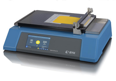byko-drive XL自动涂膜器的设计灵活,可用于涂布涂料和油墨。干膜外观受涂布速度和施加在涂膜器上的压力影晌。该涂膜器的速度调控范围为5-500 mm/s,标准的增幅为1 mm/s。将可互换的重物在涂膜器的整个工作长度上施压,以获得一致的涂膜厚度。推杆可与各种尺寸的线棒涂膜器、条形涂膜器、框架式涂膜器和涂膜刀配合使用。