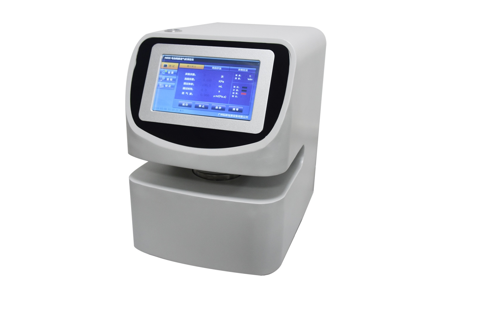通过气体流量计设定气流的输出,使该气流经过一定面积的测试样品,通过压力传感器检测当前压力并计算压力差。